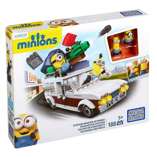 Mattel GmbH Mattel Mega Bloks Minions Movie Medium Playset Hinter dem Steuer eines Kombi-Fahrzeugs mit furchteinflößenden Aufbauten gerät eine einfache Autofahrt für Kevin und Stuart zur unerwarteten Flucht. Einfach die Minions von oben hineinsetzen und den Chaoskurs im Gelände festlegen. Auf dem Dach des Fluchtwagens befindet sich ein riesiger Blaster. In einem Safe stecken verborgene Schätze. Die Minions bestehen aus austauschbaren Teilen, wie Overalls und Schutzbrillen. Sogar ihre Arme und Füße können für individuelle Kombinationen ausgewechselt werden. ACHTUNG Erstickungsgefahr. Kleine Teile. Nicht für Kinder unter 3 Jahren geeignet.In diesem Kombi mit furchteinflößenden Aufbauten sind Kevin und Stuart auf der Flucht